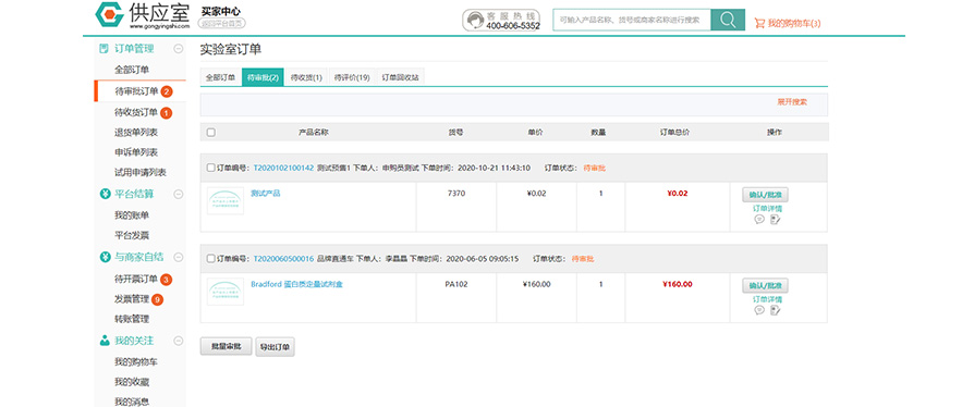 申购员下单后需通知管理员批准,批准后订单生效。