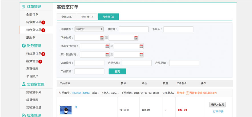 收到产品后,进入后台待收货订单,确认收货。